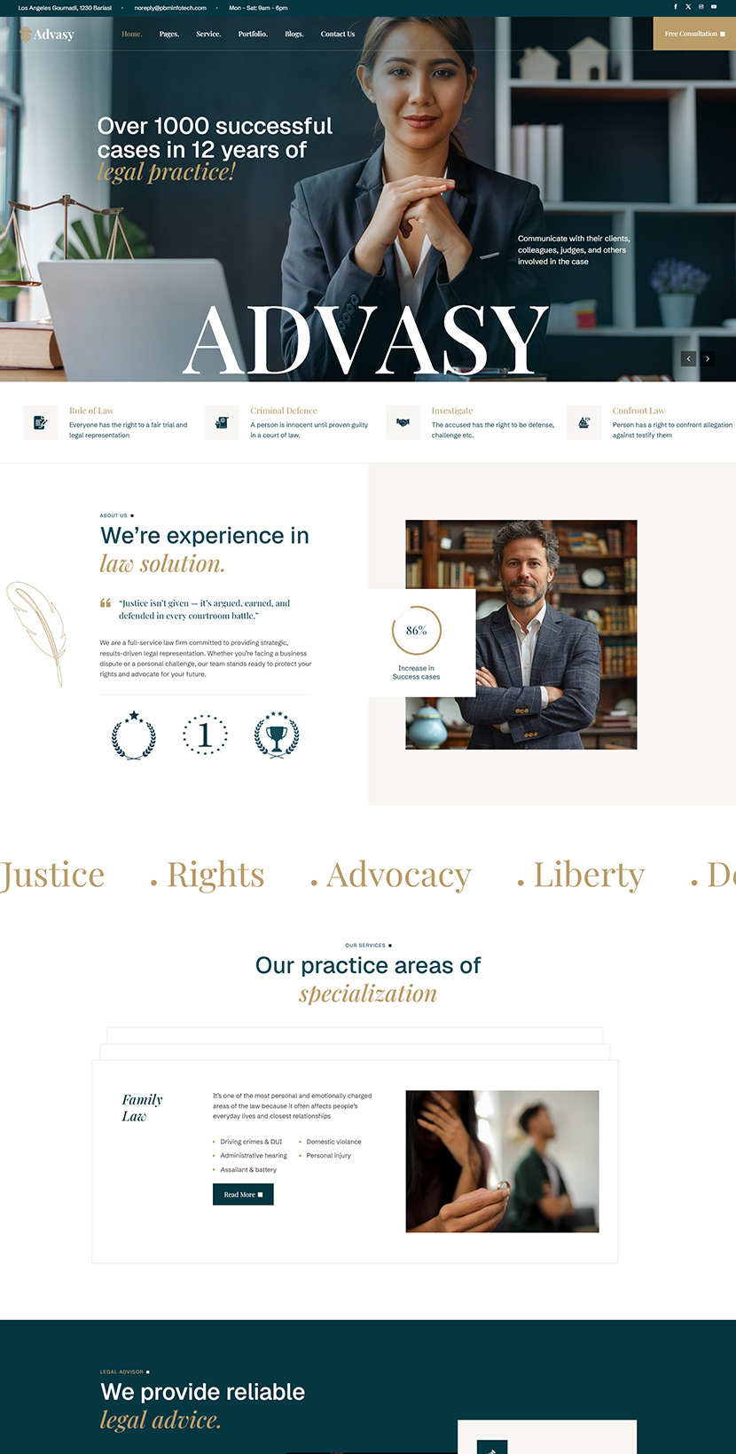 With its SEO-friendly structure, fast performance, and flexible design, Advasy is the ideal choice for legal advisors, barristers, and law professionals looking to create a trustworthy, modern, and impactful online presence.